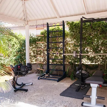 Вилла 10 Persoons Villa Zwembad, Fitness, Strand 7 Min расположена в 4 км от Ландхуиса Чоболобо и предлагает насладиться видом на сад. В комнатах предоставляется балкон, диван, телевизор с плоским экраном и спутниковыми каналами, а на кухне - микроволновая печь, электрочайник и холодильник.